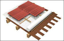 una aislación térmica e hidrófuga, para un techo de tejas o